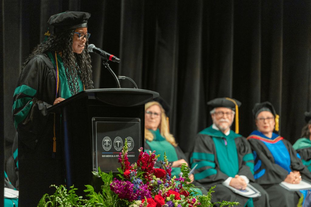 Dr. Litt is a graduate of our fellow GUS Med & Vet institution, Saba University School of Medicine, and he shared many words of wisdom with our Class of 2025, including: “I walked across a very similar stage 14 years ago and doing so gave me an opportunity to make my dreams come true. That same opportunity is being handed to you today. I hope that you will accept this next challenge in healing our systems of care – know that through this challenge, you can make your dreams come true!”